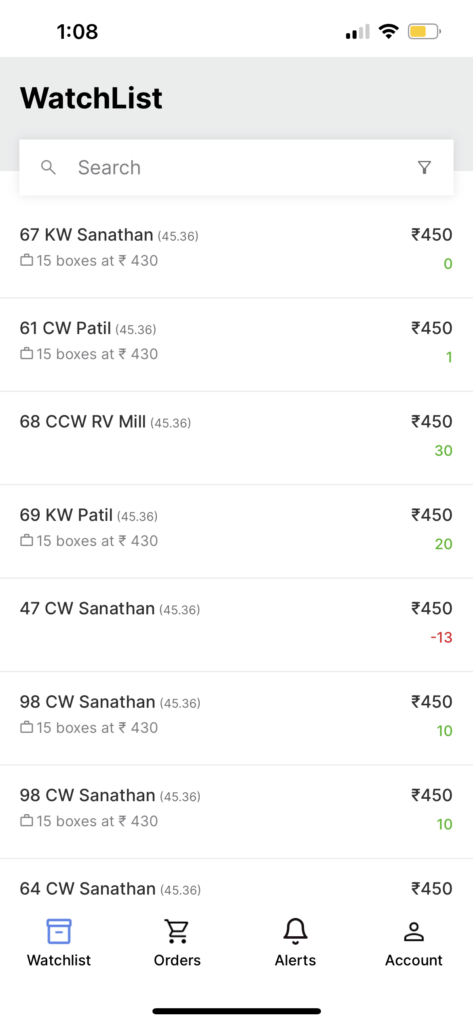 One of the standout features of our trading app is the inclusion of watchlist screens. These screens allow traders to monitor specific clothing yarn qualities and keep a close eye on their preferred products. By adding products to their watchlist, users can easily track price fluctuations, market trends, and trading volumes, empowering them to make informed decisions at the right time. The watchlist screens offer a convenient way to stay updated on the most relevant yarn qualities and seize opportunities as they arise.